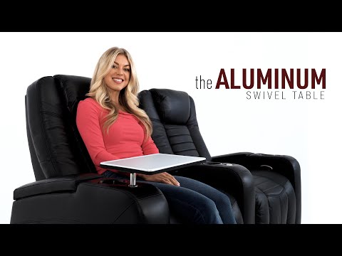 Som en perfekt accentdel till våra hemmabiosäten har vi byggt denna högkvalitativa svängbord med en modern borstad aluminiumskiva. Tillräckligt stor för att hålla snacks eller en hel måltid. Aluminiumskivan är 100% keramik och represistent, och ger den sophistication och stil som skiljer dig från det vanliga. Sidorna på bordet har en svart stötfångare så att det inte skadar eller gör sönder några föremål vid kontakt.